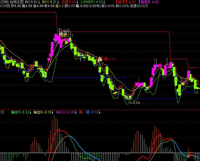 应用说明:上涨到箱顶有阻力,突破箱顶是大牛股,下跌到箱底有支撑,当跌破箱底就还会下跌。