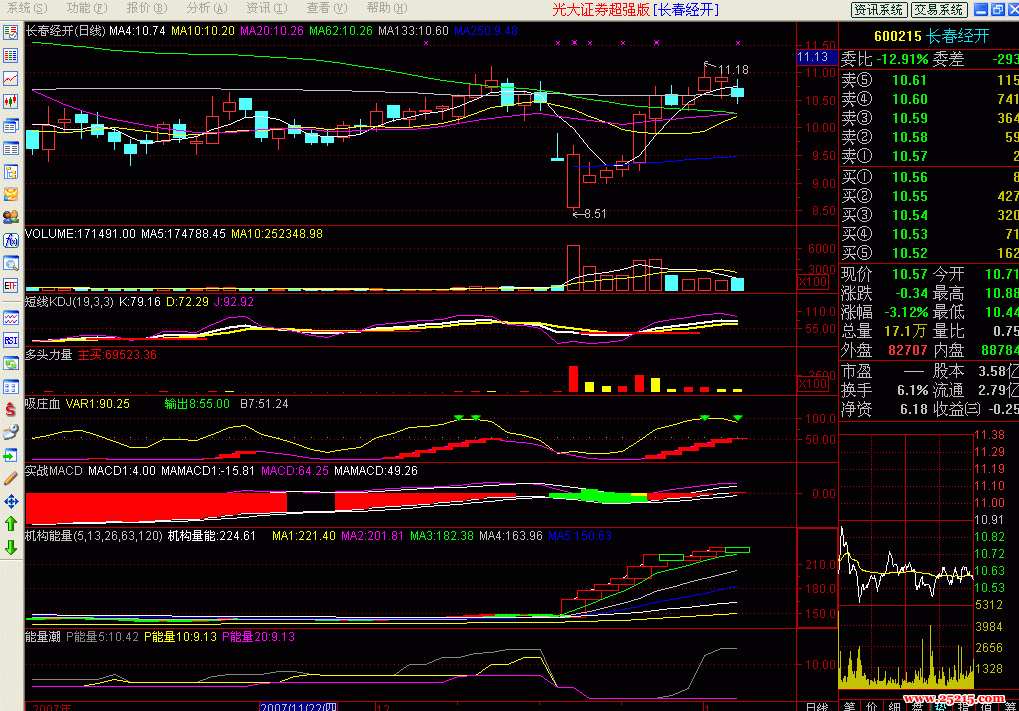 [大智慧新一代] 洞察主力目的的公式!机构能量! 收集:中国股票市场经济分析网 洞察主力目的的公式!机构能量!说明: 找出K线没有创新高,但机构能量已经创出新高的股票,买入!用法: 1、所有的指标再好也要配合大盘的总趋势; 2、找出OBV在近20天里创出新高而又涨的不多的; 3、OBV判断趋势是不错的古老的量价指标,适合于中期波段操作,短线应该配合其他指标.指标公式通用,自己修改参数,我列出来看下图!机构能量N1:=SUM(IF(CLOSE>OPEN,VOL,IF(CLOSE<OPEN,-VOL,0)),0)/30000;N2:=IF((OPEN=CLOSE),REF(N1,1),N1);机构量能:N2;STICKLINE(CLOSE>=OPEN,REF(N2,1),N2,6,1),COLOR0000FF;STICKLINE(CLOSE<OPEN,N2,REF(N2,1),6,1),COLOR00FF00;MA1:EMA(N2,D1);MA2:EMA(N2,D2);MA3:EMA(N2,D3);MA4:EMA(N2,D4);MA5:EMA(N2,D5); 【发表评论】【加入收藏】【告诉好友】【打印此文】【关闭窗口】 相关内容 上一篇教程: [通达信] 中线CCI指标,没有未来涵数 下一篇教程: [通达信] 金牌黑马的优化极品版,信号准确率高!