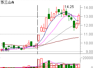 在97年底的年报预演行情中,深市的“苏三山”在连续几个月日成交量不足200万股