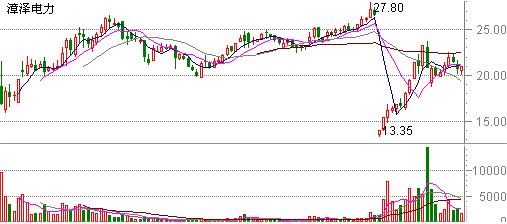 “漳泽电力”于97年6月9日上市,上市时4000万的流通股,第一天仅成交948万