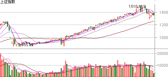 均线系统已经空头排列,1510.18是顶。 这时候已经跌了100点,但仍然是顶部区域,