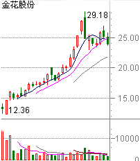 “金花股份”上市首日在12.5-14.15元之间换手。当日均价为13.5元。然第二
