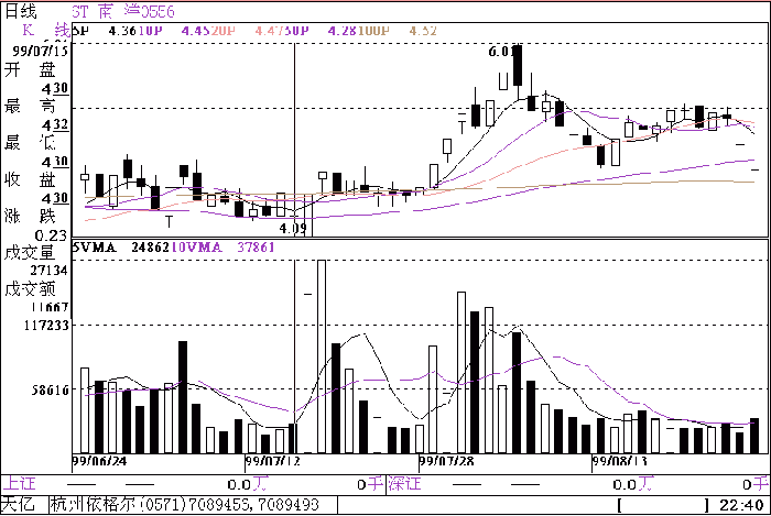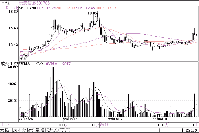 再如长安信息( 600706 )去年尚有 8 分钱的赢利,在网络股群起发动之际,该股亦被庄家扶上 18 元以上的高价,但 - 烂泥扶不上壁 - , 6 月底起连收数根长阴,股价刚刚喘定, 7 月 22 日公司羞答答地把亏损的中报公之于众,股价被再度砍去一刀,当天跌停,但稍稍下探后很快企稳。