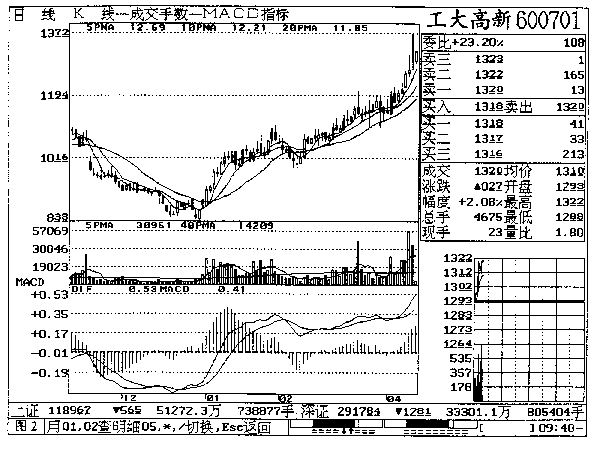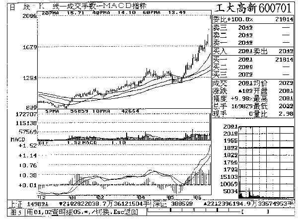 | 李振权:我见到工大高新5月20日果然有青龙在60日均线附近取水,而且没有K线跌破60日均线,好像是青龙不下河,只在河边取水。我也看到成交量图上有一个浅水区,请问这种图形的市场意义是什么? 李玉河:将均线系统的参数调整为5日、10日、60日,它们分别为1周、2周和一个季 度的交易日。由于60日平均线具有相对的稳定性,它一般表现为每年股价波动的中轴线。 一般情况下,当5日、10日均线围绕中轴线上下波动时,股价表现为盘整态势。它给短线炒作的机会不多。如果5日,10日均线的黄金交叉点能够在60日平均线之上,起稳回升, 那么说明在本波上升浪中有主力在收集筹码。随着主力库存量的增加,股价的底部会有明显的抬高,5日,10日均线就可能运行在60日均线之上。利用5日、10日均线的折点可判断股价的转折,死亡交叉为卖出点,黄金交叉为买入点。特别是当5日,10日均线形成的交叉能够站在60日均线之上时,更是买入的机会。只要两条均线的金叉点,即5日均线上穿10日均线的那个交叉点,能够在60日平均线附近起稳回升。这就意味着青龙在河边取水成功。有趣的是:青龙取水离河边越远越好,即5日,10日均线的黄金交叉点与60日均线保 持一定的距离,这个【青龙取水】就显得更有力度。青龙取水后成交量图上会出现一个水 坑,有趣的是成交量越萎缩,即浅水区的水越浅,说明空方的抛压越小,将来青龙腾空股价上升的力度越大。 李振权:6月18日收盘后,工大高新股价在昨天的涨停板上再一次涨停,股价已到达 20.81元。我从10.41元买进该股后,已经整整涨了10.40元,涨得我都有点躁了。明天会不会跌停板呢?不管怎么说,逢高派发,落袋为安,总是不错的。我打拷机给95815拷 21948。图(600701-5) ![]() |
