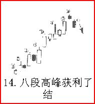 如图所示,当价格爬上第八个新高价线是,即应获利了结,就算此时不脱手,也不可放至超过第十三个新高价线。