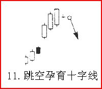 亦即今日的十字线完全包含在前一日的大阳线之中的情况。此状态代表买盘力道减弱,行情即将回软转变成买盘,价格下跌。