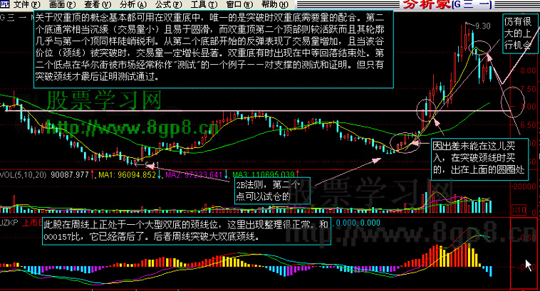 3.形态构筑的时间越长,形态完成后的效果就越长。如果形态构筑时间短,那其形态的技术意义就不大,这一点是需要使用者加以注意的。一般来说,双底形成的时间在半年至一年以内最为有效。