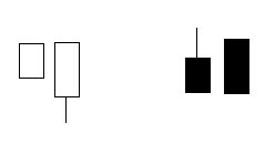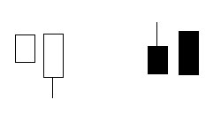 在价格出现阳线上涨之后,又出现阴线,且该阴线令价格落到前阳线实体1/2以下。这一组合常在市势已经大涨一段, 甚至创下天价的时候出现,表示市势逆转,随后将为下跌行情。 ![]() |