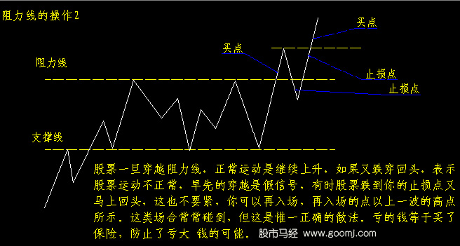 K线操作图解:阻力线的操作 收集:中国股票市场经济分析网 阻力线 1.支撑线和压力线的作用 支撑线又称为抵抗线。当股价跌到某个价位附近时,股价停止下跌,甚至有可能还有回升。这个起着阻止股价继续下跌或暂时阻止股价继续下跌的价格就是支撑线所在的位置。 压力线又称为阻力线。当股价上涨到某价位附近时,股价会停止上涨,甚至回落。这个起着阻止或暂时阻止股价继续上升的价位就是压力线所在的位置。 支撑线和压力线的作用是阻止或暂时阻止股价向一个方向继续运动。同时,支撑线和压力线又有彻底阻止股价按原方向变动的可能。 2.支撑线与压力线相互转化 一条支撑线如果被跌破,那么这个支撑线将成为压力线;同理,一条压力线被突破,这个压力线将成为支撑线。这说明支撑线和压力线的地位不是一成不变的,而是可以改变的,条件是它被有效的足够强大的股价变动突破。 3.支撑线和压力线的确认和印正 一般来说,一条支撑线或压力线对当前影响的重要性有三个方面的考虑,一是股价在这个区域停留时间的长短;二是股价在这个区域伴随的成交量大小;三是这个支撑区域或压力区域发生的时间距离当前这个时期的远近。 【发表评论】【加入收藏】【告诉好友】【打印此文】【关闭窗口】 相关内容 上一篇教程: 股票K线教学:双重顶之二 下一篇教程: K线操作图解:支撑线的操作