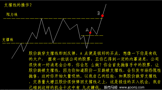 K线操作图解:支撑线的操作 收集:中国股票市场经济分析网 支撑线 1.支撑线和压力线的作用 支撑线又称为抵抗线。当股价跌到某个价位附近时,股价停止下跌,甚至有可能还有回升。这个起着阻止股价继续下跌或暂时阻止股价继续下跌的价格就是支撑线所在的位置。 压力线又称为阻力线。当股价上涨到某价位附近时,股价会停止上涨,甚至回落。这个起着阻止或暂时阻止股价继续上升的价位就是压力线所在的位置。 支撑线和压力线的作用是阻止或暂时阻止股价向一个方向继续运动。同时,支撑线和压力线又有彻底阻止股价按原方向变动的可能。 2.支撑线与压力线相互转化 一条支撑线如果被跌破,那么这个支撑线将成为压力线;同理,一条压力线被突破,这个压力线将成为支撑线。这说明支撑线和压力线的地位不是一成不变的,而是可以改变的,条件是它被有效的足够强大的股价变动突破。 3.支撑线和压力线的确认和印正 一般来说,一条支撑线或压力线对当前影响的重要性有三个方面的考虑,一是股价在这个区域停留时间的长短;二是股价在这个区域伴随的成交量大小;三是这个支撑区域或压力区域发生的时间距离当前这个时期的远近。 【发表评论】【加入收藏】【告诉好友】【打印此文】【关闭窗口】 相关内容 上一篇教程: K线操作图解:阻力线的操作 下一篇教程: 十种经典K线组合图分析
