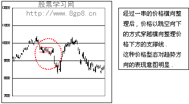 就是否被填补的角度来观察,则竭尽缺口通常很快便会被填补。这个填补的意涵即为趋势中断之意。至于后续的发展,可能是整理型态,亦可能是反转型态。
